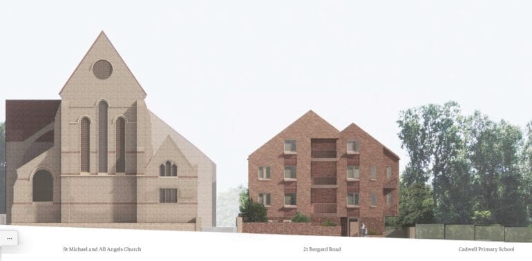 This development comprises the erection of a four-storey building accommodating 7 residential units, cycle parking, landscape enhancements and associated works at Borgard Road, Woolwich, SE18 5LD.