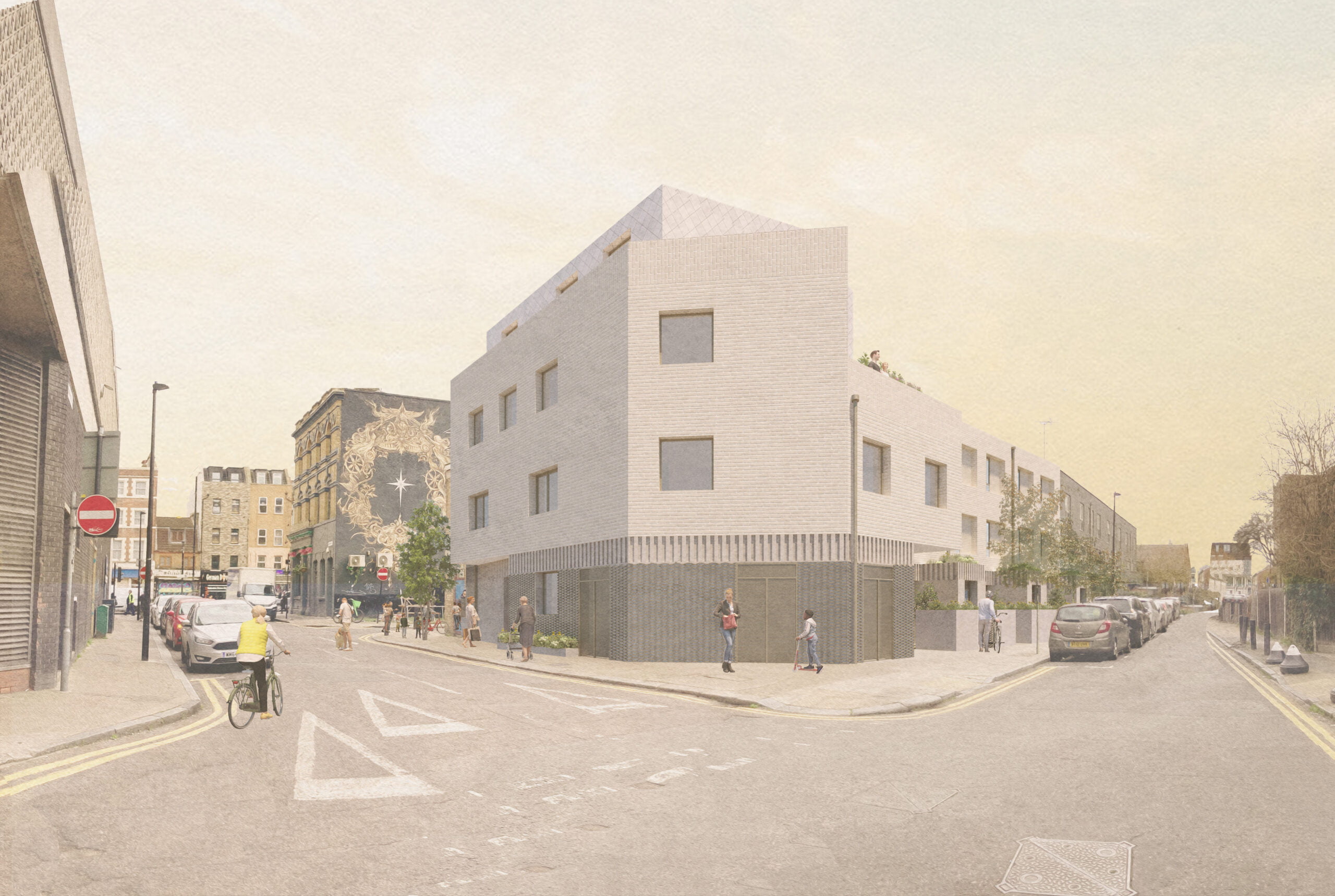 The Site comprises the former One Stop Shop (Use Class E) within the ownership of the London Borough of Tower Hamlets. The development demolishes the existing vacant building on the Site, to allow the erection of a part 3, part 4 storey building comprising 9, GLA funded, social rent dwellings (1x1b, 7x 4b and 1 x 6b). The ground floor is composed of 3 maisonettes and one wheelchair accessible unit. Each maisonette unit at ground floor level has a self-contained entrance and internal stair up to a part first floor level of accommodation. Access is also provided at ground floor level to the 3 upper maisonette units which are located over part first and second floor levels. A further communal access is provided towards the junction of Rushmead and Florida Street, providing access to 2 self-contained flats over first, second and a part third floor level.